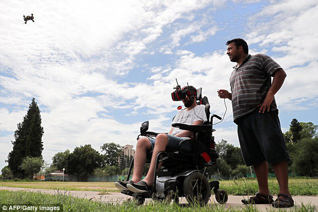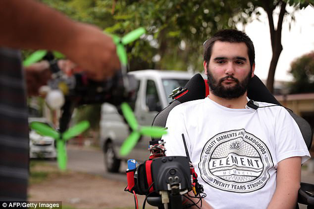 现在,在一些电子专家与工程师的帮助下,他可以再次感受速度带来的激情,扎罗力移动头部就可以控制无人机飞行,时速达到93英里(约150公里)。