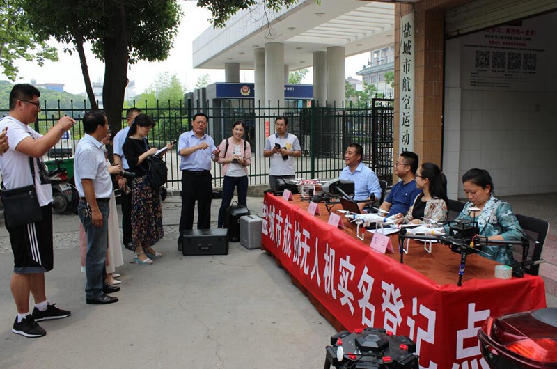 当天盐城航协无人机实名登记点有50多架飞机领取了身份证。