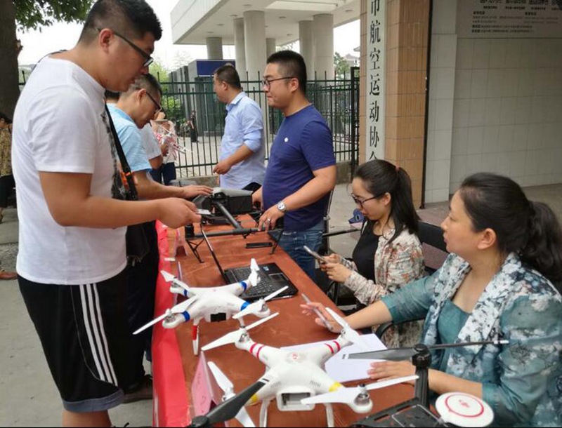 盐城市航协工作人员向来登记的无人机操作者介绍登记流程