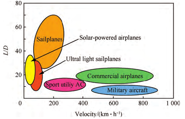 不同类型飞机的升阻比和速度范围
