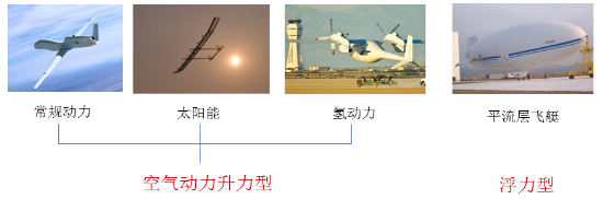 临近空间超长航时飞行器有空气动力升力型和浮力型两大类,目前的发展如下图: