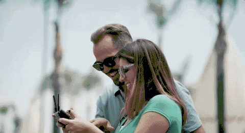 当一家四口看到眼前庞然大物时,他们惊讶的神态透着墨镜也能散发出来,随之一个好主意油然而生。这次孩子做导演,让Spark追着惊恐的爸爸径直飞行,模仿恐龙追逐逼近爸爸的第一视角。对他们精准的飞行操控,“影帝”爸爸满意地竖起了大拇指。