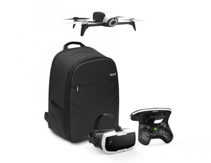Bebop 2套装的前部装备了一个固定的相机,在实际使用过程中用户能够使用Skycontroller 2手柄进行控制,或者使用Parrot的FreeFlight Pro智能应用来进行操作。该套装完整充电之后能够飞行25分钟,最快飞行速度为37mph。