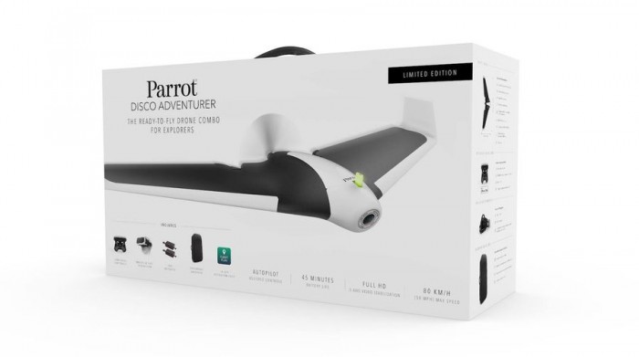 该套装上装备了1400万像素摄像头,支持Full HD视频拍摄。此外该套装还附赠了第二块电池,提供最长90英里的飞行距离。Bebop 2套装的售价为579.99美元,而Parrot Disco Adventurer套装的售价为999.99美元,两款套装都将于本月开始上市发售。
