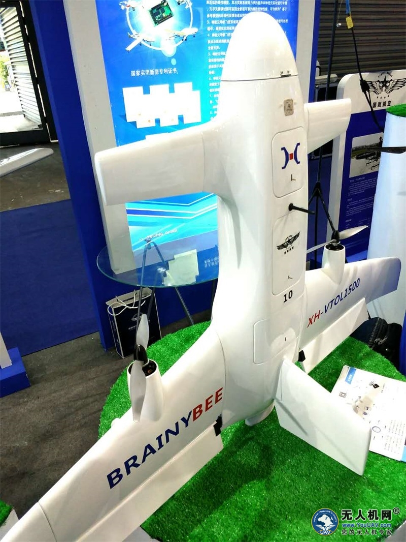 翔鸿科技在展会上所展出的这一款无人机是其最新推出的一款创新型垂直起降固定翼无人机,同时具备垂直起降和高速巡航的能力,该机型不需要跑道和起降空域,这种优势保证它能在山区、丘陵、丛林等复杂地形和建筑物密集区域顺利作业。