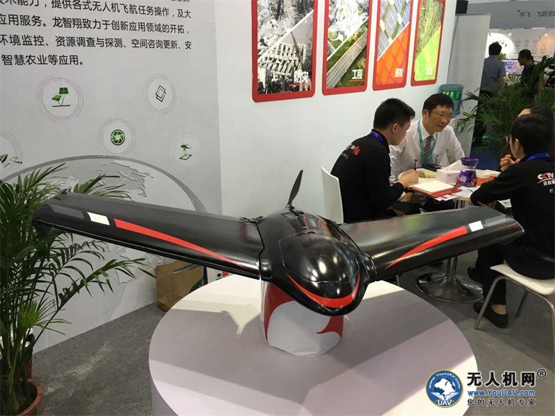 翼龙固定翼无人机采用的是手抛式或弹射式起飞,为了保证挂载设备的安全,其回收采用了伞降的方式。该款无人机最长的飞行时间可达到70分钟,每架次能拍摄的面积可达到1800公顷,并可搭载2400万画的数字相机,其分辨率可达到3公分,据工作人员表示就算飞到200米的高空也可以清晰的看到停在路上的车牌号。翼龙固定翼无人机可广泛的应用到各种领域,还可以搭载不同的任务载荷,如红外线热感摄影机、多光谱传感器等设备。