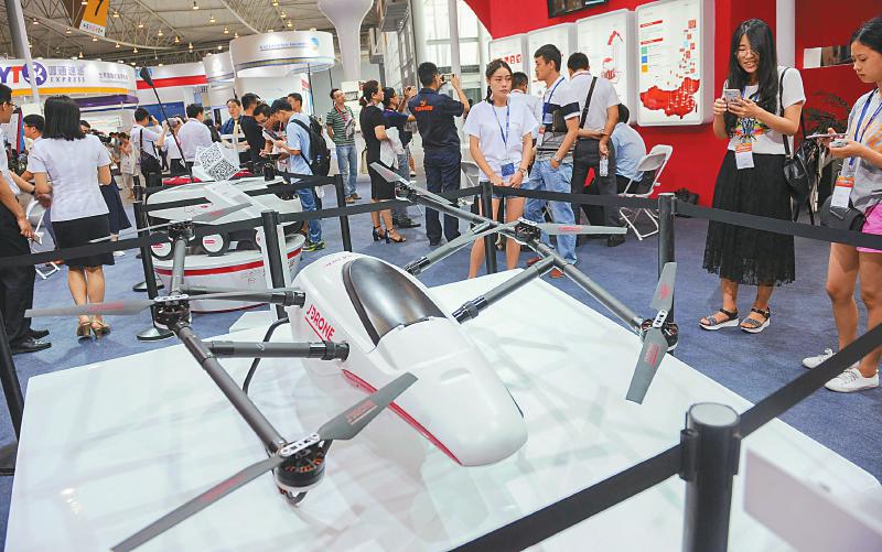 6月28日,国际物流节上,京东物流现场展示的快递无人机引起众人关注。 本报记者 吴传明 摄