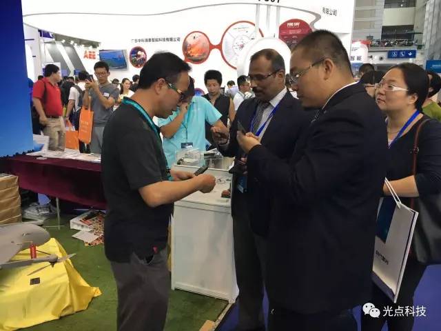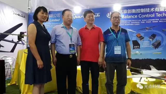 中国无人机产业联盟主席,中国·深圳无人机行业协会会长杨金才先生代表主办方对光点科技的展位进行了参观指导。(图左2)