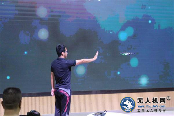 本次活动最为吸引无人机爱好者的是无人机表演环节,大疆创新带了他们5月份最新发布的第一款迷你型掌上无人机——“晓”Spark无人机。工作人员通过手势控制功能——在不使用遥控器或智能手机的情况下,仅用双手就轻松完成掌上起飞、手势操控调整位置、示意飞远并用手势自拍、手势召回以及掌上降落的全过程,并与现场观众互动,实现了拍摄画面与活动现场LED屏幕的实时图像传输。