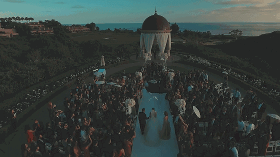近年来,一些高端婚礼拍摄的团队,引入了无人机设备,为婚礼摄影注入了新鲜的视角。由于航拍得天独厚的优势,使得画面充满了氛围感,仿佛以上帝的视角注视着这一对对情侣一般。