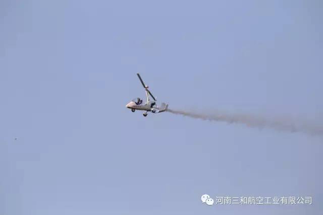 “太阳之鹰”自转旋翼机是河南三和航空工业有限公司自主研发、生产的开放式座舱,前后串列的双座旋翼机,除具备旋翼机本身的稳定性高、安全性好、抗风性强、性价比高等特点外,我公司还专门设计了整机弹射降落伞,在没有迫降条件的情况下飞行员可以打开整机降落伞进行整机迫降,大大提高了飞行的安全性。三和航空作为国内首家被民航局批准制造旋翼机的厂家,此次参加大会,不仅为大家带来了精彩的飞行表演,更是展现了中国通用航空制造业的蓬勃发展。