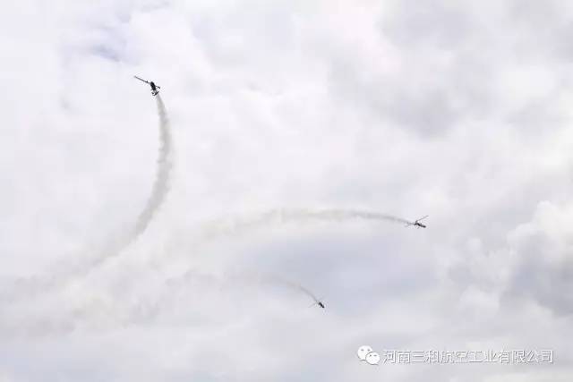 2017年7月21日,第六届AOPA国际飞行大会暨第二届贵州黄平飞来者大会在贵州黄平旧州机场盛大开幕。河南三和航空工业有限公司携三架自主研发生产的“太阳之鹰”自转旋翼机亮相本届大会,公司总经理陶亮带队三机编队为大家上演了精彩的空中表演,公司副总经理兼总飞行师首席试飞员王志强更是上演了精彩刺激的单机特技飞行表演,在这样空前盛大的飞行大会上,不仅展示了三和航空具有完全自主知识产权的旋翼机性能,更是展现了我国通用航空制造业的蓬勃发展。