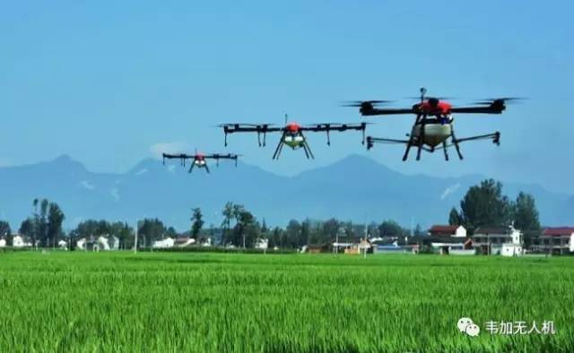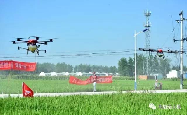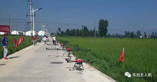 随着主持人的一声令下,韦加无人机操作人员手持终端控制设备,植保无人机徐徐升空,根据设定的区域和航线,在距离水稻大约3米的上空自动精准飞行和喷洒药肥。韦加植保无人机飞防作业是将杀菌剂、杀虫剂和叶面肥混配一次使用,均匀喷洒,可达到防病、防虫、防早衰、增粒重的作用。
