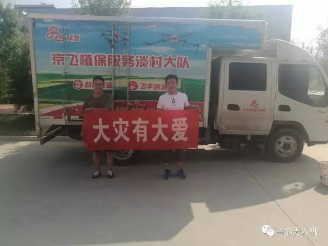 韦加无人机副总经理贺峰主动联系陕西榆林市慈善协会,为灾区免费提供无人机喷洒消毒。在第一时间,贺总紧急召回在新疆等全国各地的10余名工作人员,免费提供10架无人机、2辆工作车,组成两个工作小组,于7月30日分别赶赴子洲、绥德两地进行灾后消毒防疫工作。