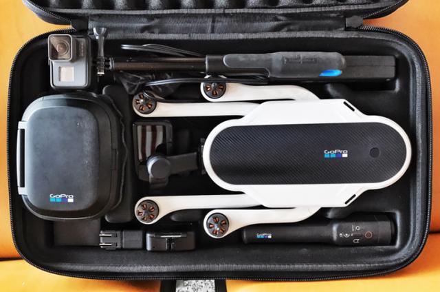 GoPro Karma无人机套装专门为出行摄影师打造,作为为数不多的可以进行折叠的无人机,Karma折叠后可以轻松地被放入一个背包之中。如果使用其a自带的双肩背包,包含无人机、遥控器、GoPro、手持稳定器和所有配件,都可以轻松装在里面,让旅行拍摄者轻装出行。