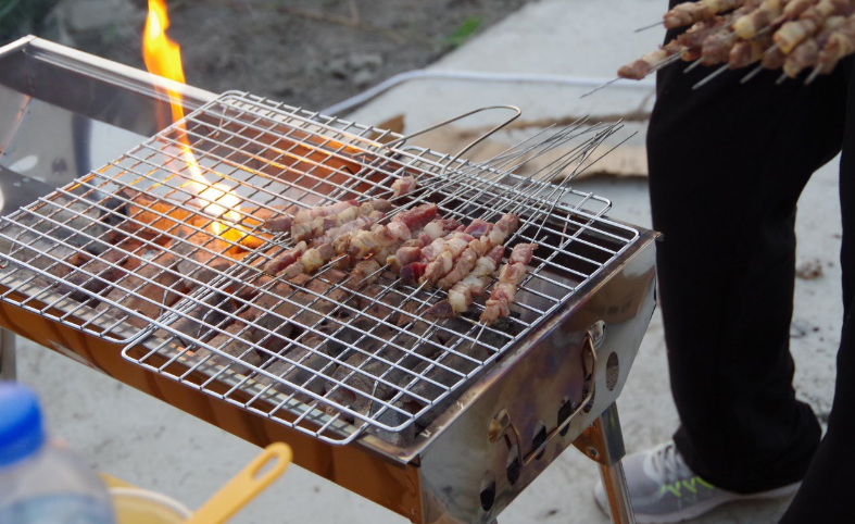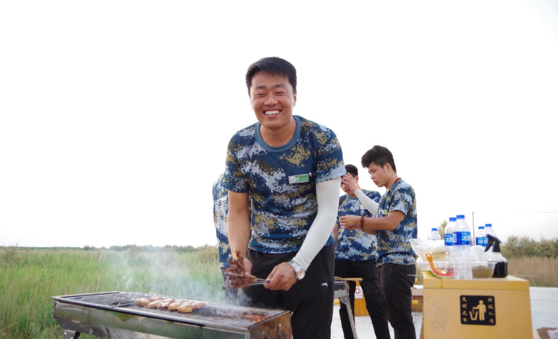 傍晚时分,大家在营地上架好烤炉、拿出准备好的食材,开始烧烤。等到香味四溢时,大家三三两两围炉而坐,拿起刚刚烤好的热腾腾的羊肉串,边吃边聊,一起分享今天的点点滴滴。