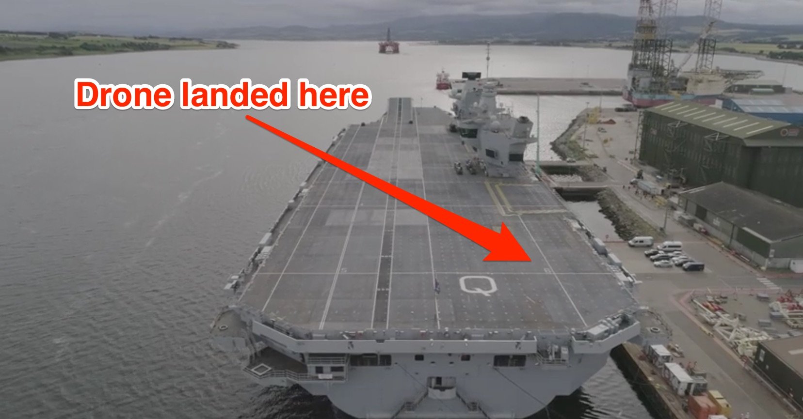 无人机降落位置据英国广播公司报道,一名业余摄影师将一架消费级无人机降落在英国最新“伊丽莎白女王”号航母上,甚至航母方面根本未能发现。该事...