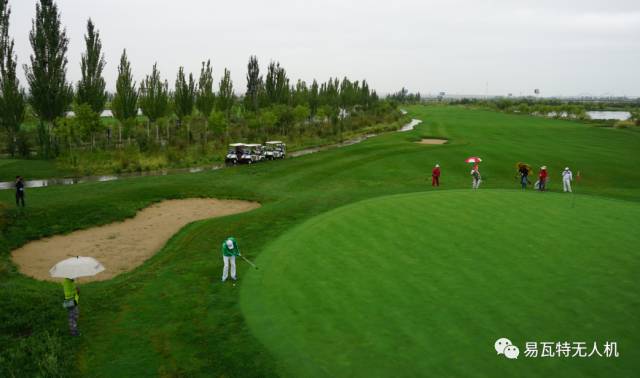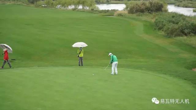 值得一提的是,活动现场,易瓦特也专门派出了无人机小组,全程在雨中的天空作业,通过航拍视角,为大家带来不一样的视角展现高尔夫的魅力。