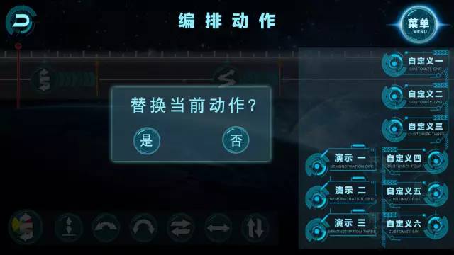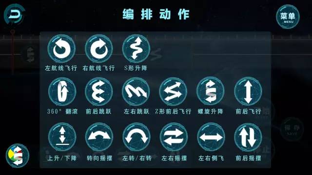 用户可通过APP编排动作界面中为Mini OF编排舞蹈,在界面有一条空白的时间线,添加代表各种动作的图标,能够编排出许多有趣的序列,如翻转、蛙跳动作、航线飞行等,Mini OF 会随着时间轴的滚动翩翩起舞,可进行人机互动娱乐,还可让无人机的灯光配合舞曲的节奏闪烁,可玩性大大增加。