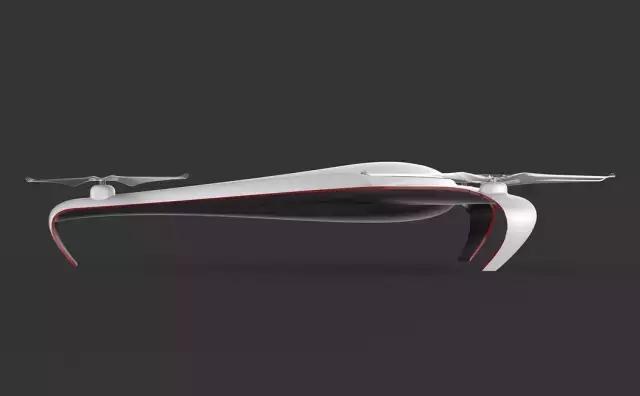 无人机支架和机身浑然一体,支架是机身的延续,这种造型完看起来像是从特斯拉汽车的外形设计理念移植过来的。