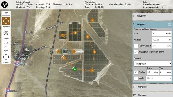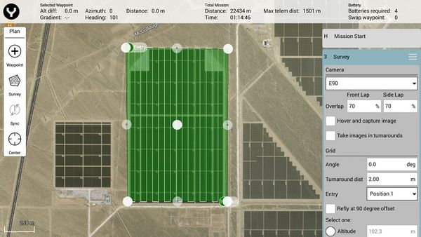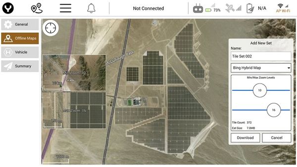 屏幕界面:用户可下载地图,对飞行线路进行编程,以便在没有网络连接的情况下继续使用。