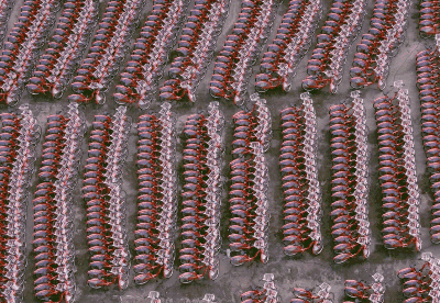 这个镜头一开始并不在三位主创的计划内,某一天他们开着车正为不知道拍什么而发愁,无意中看到了一堆路边的单车,“当时想看看无人机眼中的它们是怎样的,于是停车,起飞,就拍了”,这是乐永程和他的伙伴们无意中的一次生活遇见,却成为整支片子中最深刻的镜头。