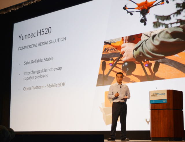 YUNEEC集团全球CEO 蒋浩(Michael Jiang)在InterDrone上分享YUNEEC商用无人机应用优势及发展思路。