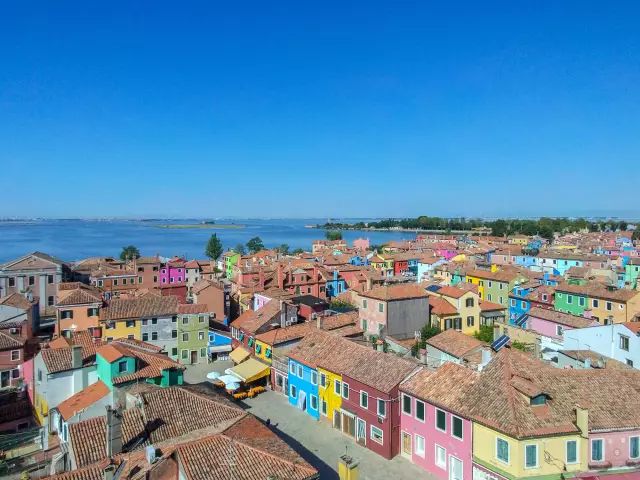在距离威尼斯大概1-2个小时路程的地方,有一个离岛叫做彩虹岛(burano)。这个岛以彩色的房屋著称,每个房屋都有多种颜色,因而被称为彩虹岛。