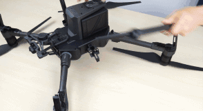 M210的机臂采用折叠设计,折叠状态下的M210变得非常细长,所以为了配合飞机的尺寸,拉杆箱也做得比较长。要成为一台完整、可供飞行的无人机,M210还要组装起落架、螺旋桨和电池。