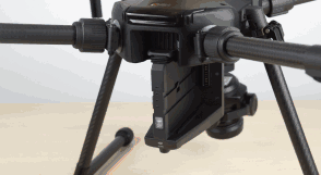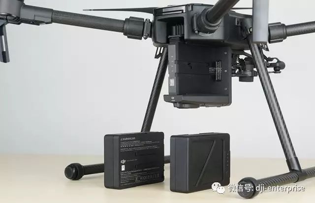 M210的电池位于机身下方,安装方式跟悟2相同。这种设计跟起落架一样,会在一定程度上挡住摄像头的视线,不过定于行业应用的M210极少遇到摄像头往机身后方的情形,因此这一设计并不影响正常使用,除非你把M210当航拍机用,且为双控配置。