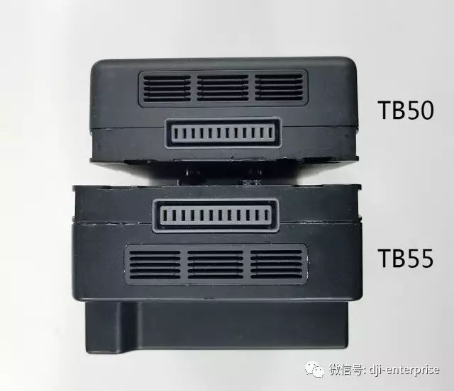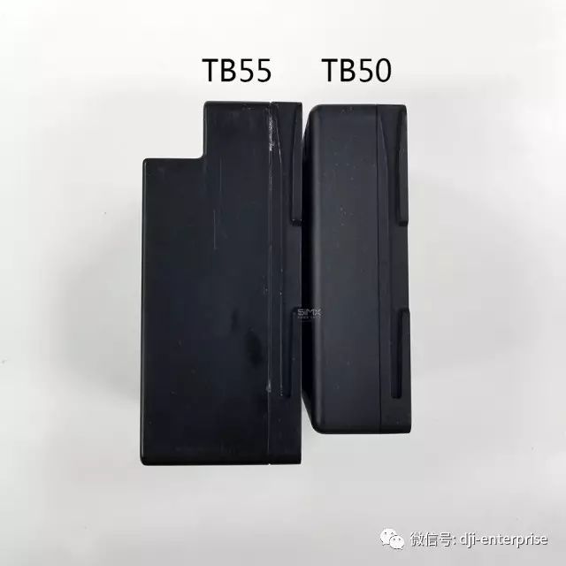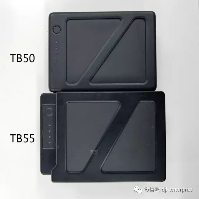 TB50和TB55除了电池容量和重量不同以外,在尺寸上TB55也比TB50更大、更厚。由于尺寸不同,TB55并不能安装到悟2上。