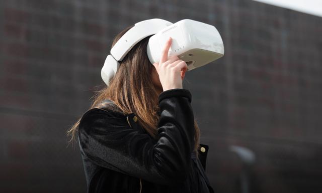 在大疆goggles飞行眼镜的内部有两块显示屏,分辨率达到了1920*1080,通过分光镜可将左右显示屏上的偏振光透射、反射到对应的眼睛前方,然后在经过偏振片的滤光,防止左右眼的图像重叠,而且内置的非球面透镜只需稍微放大,便可通过5英寸的显示屏提供出85°的视角场。如此高清的画质和极低的延时配合多种智能飞行模式可为佩戴者带去稳定性极高的实时画面以及精准度较高的控制,真正让佩戴者享受身临其境般的飞行体验,犹如鸟儿一样置身于这个伟岸的世界,真正以第一人称的视角观察世界,而不像是借助设备。