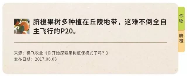 极飞P20执行作业的模式多样化、操作灵活的同时喷洒精准,选择用P20进行植保的农户越来越多了。我们进行梳理后发现,适用P20喷洒作业的作物已经超过50种,包括粮食作物、灌木、果树、蔬菜等等,适用范围非常广。如果你对P20的适用性还有疑问,不妨参考以下列举的部分作物喷洒案例,点击卡片还能查看相关作业的推送。
