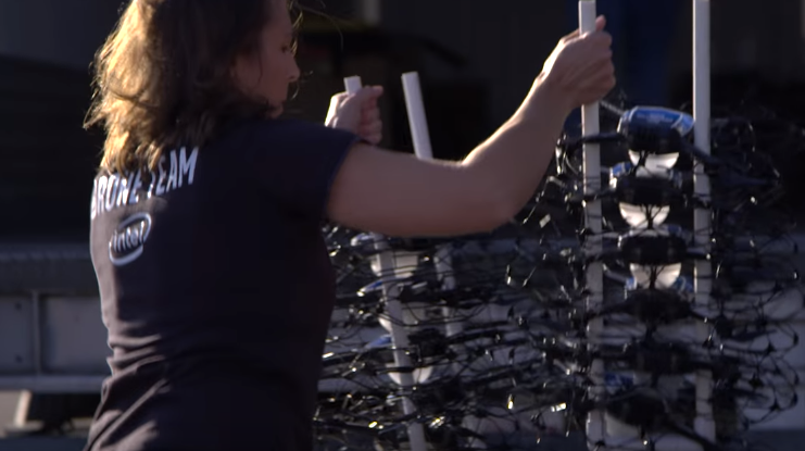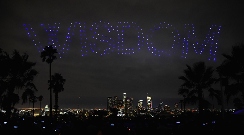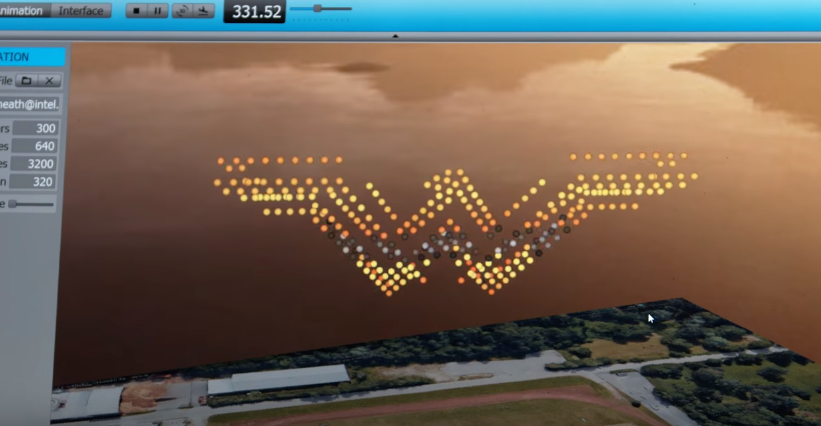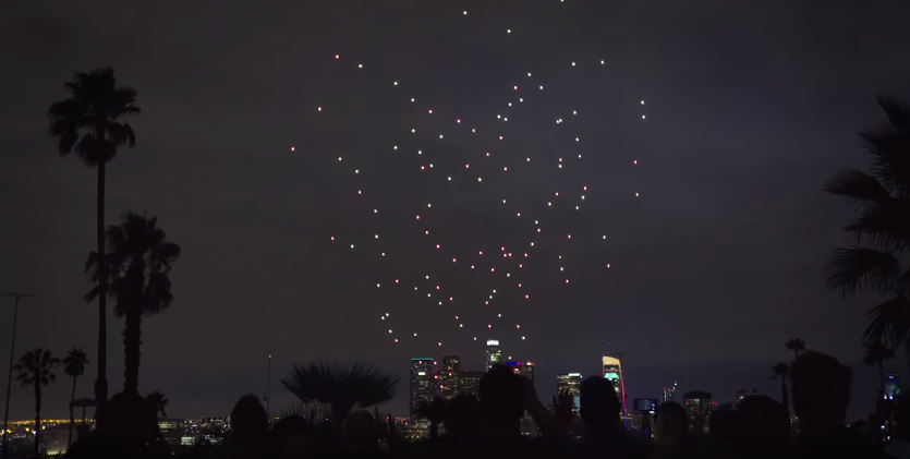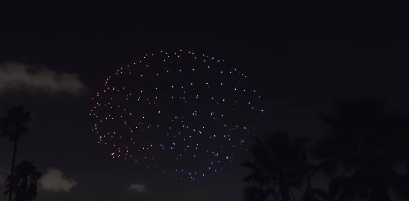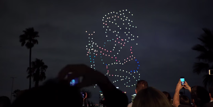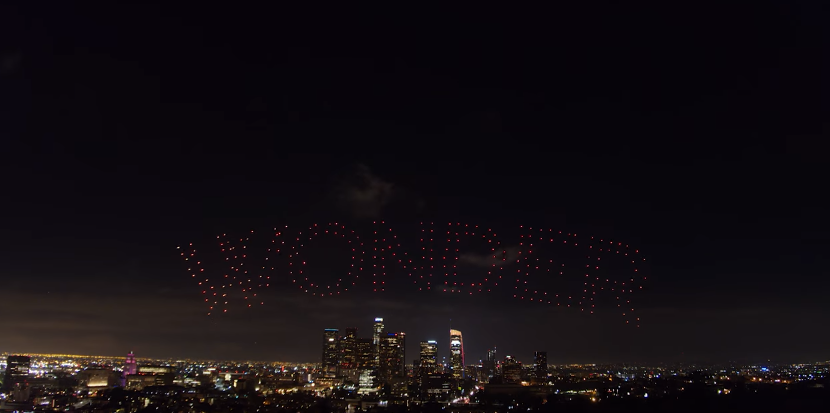 每逢节庆活动,烟火闪亮天际,然而在洛杉矶道奇体育馆( Los Angeles Dodger Stadium )会场,无人机却取代了烟花的位置,为《 Wonder Woman (神奇女侠/神力女超人)》光碟发行助兴。超过 300 架无人机带着七彩灯光,进行了一场壮丽夺目的大型光影秀。