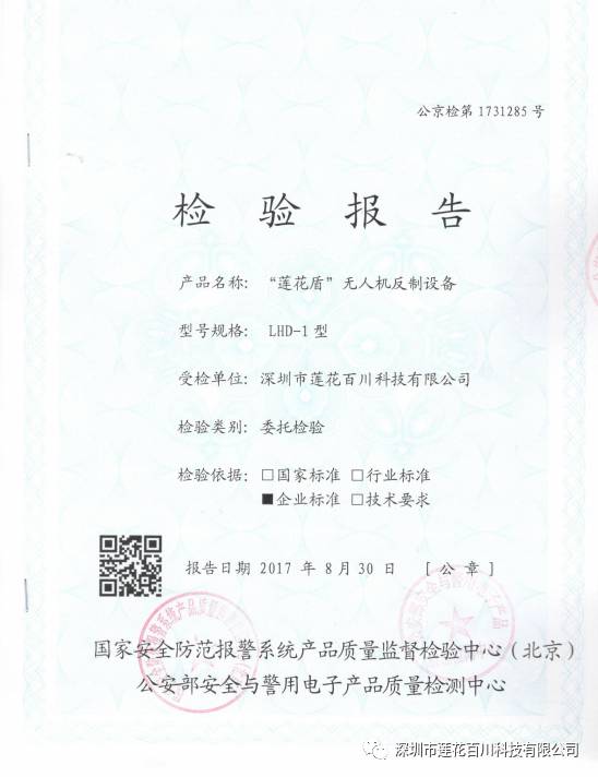 我司反无人机系统设备“莲花盾”已经通过国家安全安全防范报警系统产品质量监督检验中心及公安部安全与警用电子产品质量检测中心检测。是监狱空中安全防范设施标准化,确保监狱监管安全稳定的可行性措施。