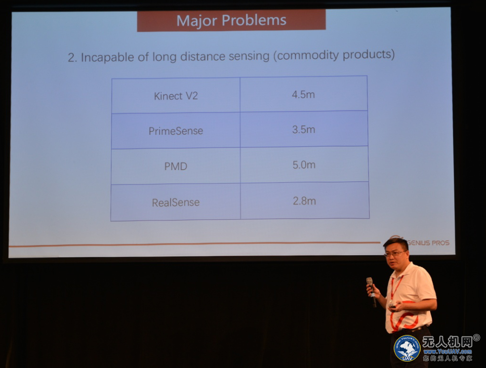 白总在发布会上表示:“我们团队在经历了5年的艰苦研发,经历了多位天才工程师无数次的实验、讨论再加上一点点的运气,今天我们做出了颠覆性的产品:这是我们产品的实拍效果,在强阳光下,我们可以清晰、准确的感知到80米外的一个人,拥有大量稠密可靠的三位点云数据。GeniusPros的新一代固态面阵激光雷达(solid-state lidar sensor)基于光珀的技术原理突破及第一代“GeniusPros 芯片,整合了深度相机高分辨率,低成本的优势以及激光雷达远距离、抗阳光的优势。光珀新一代图像雷达将彻底颠覆现有三维传感器,大大推动整个机器人,无人驾驶等人工智能产业的落地”。而GeniusPros,是全固态方案,我们的产品没有任何移动的部件,整个产品生产过程就像生产一台相机一样容易。同时我们的面阵方案分辨率非常高,我们不仅仅在全球率先实现了固态激光雷达量产的问题,同时还解决了分辨率的问题”。