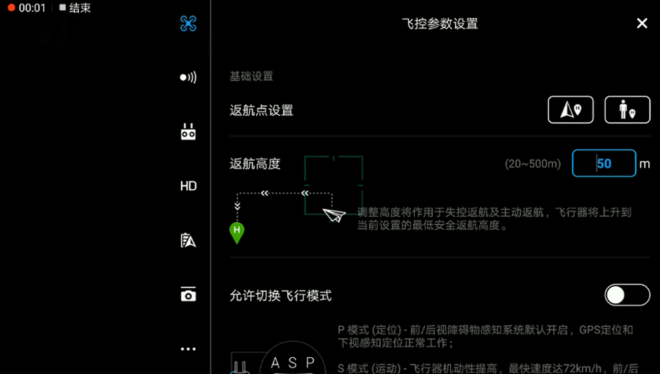 敲黑板,以后在大草原上远距离飞行应该选2.4G,在市区环境飞记得切换5.8G
