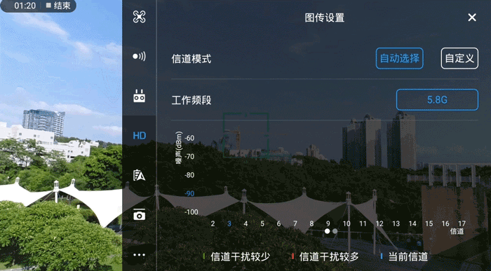 精灵4Pro等机型提供了2.4G和5.8G两种图传信道