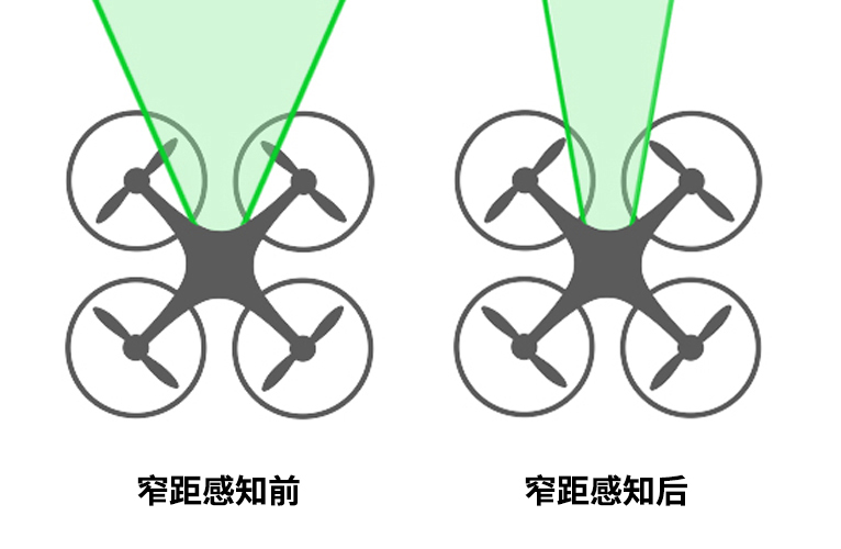 开启“窄距感知”后,飞机检测的避障角度变小,飞机就能顺利穿过去啦
