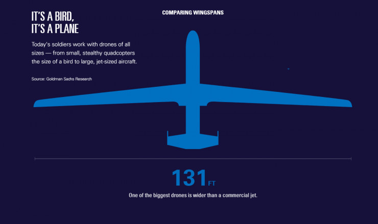 高盛表示,目前的无人机传感器技术正在研发一种能够覆盖约700万平方千米的传感技术。700万平方千米相当于美国74%的面积,可以覆盖从芝加哥到旧金山之间的大部分土地。