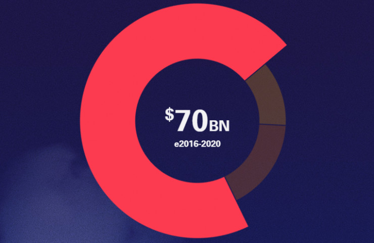 根据高盛研究的预测,从2016年早期到2020年,得益于逐渐增长的商用和政用市场,无人机将有1000亿美元的市场机会。