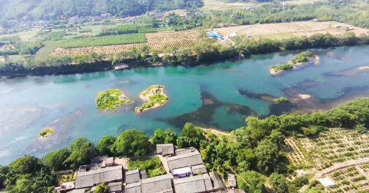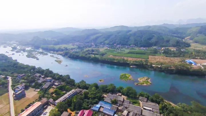 漓江上游,不是名胜却也秀丽。水流湍湍,暗涌给清澈的江面增添深深浅浅的颜色。高空俯瞰,稻田,村屋,看似平常,却是难得的桃源之境。