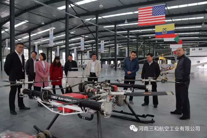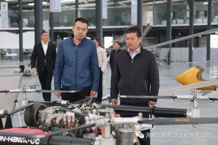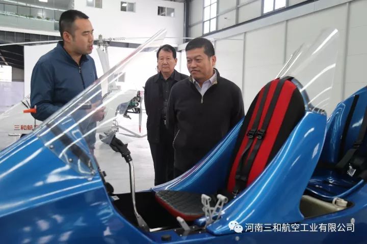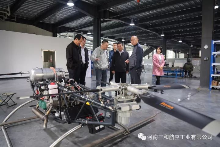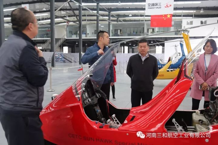 河南三和航空工业有限公司作为郑州市上街区通航试验区的重点企业,今天迎来了中国民航局空管行业管理办公室副主任张瑞庆、通导处副处长潘捷、省民航办主任康省桢、规划建设处处长裴中华、民航河南监管局副局长王庆伟、郑州市航空枢纽办主任王宏、省航空运动管理中心主任牛安林,在上街区区委副书记李新军、副区长阎胜、郑州通航试验区管委会副主任王晓等领导的陪同下,参观考察了我公司自主研发生产的“太阳之鹰”自转旋翼机、“穿云鹰”无人旋翼机、“祥云320”载人无人机、“天眼”垂直起降复合翼无人机和“阿凡达”飞行摩托。