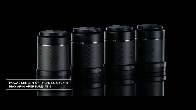 为保障航拍的稳定性,DJI专为DL卡口推出的4款覆盖16mm到50mm、解析度高达8K的定焦镜头(包括DJI DL-S 16mm F2.8 ND ASPH、DJIDL 24mm F2.8 LSASPH、DJIDL 35mm F2.8LSASPH以及DJIDL 50mm F2.8LSASPH),并根据航拍需求,结合优秀的日本制造技术进行全新设计,采用一体碳纤维外壳设计,使镜头重量更轻(仅180g)、拍摄更加稳定。