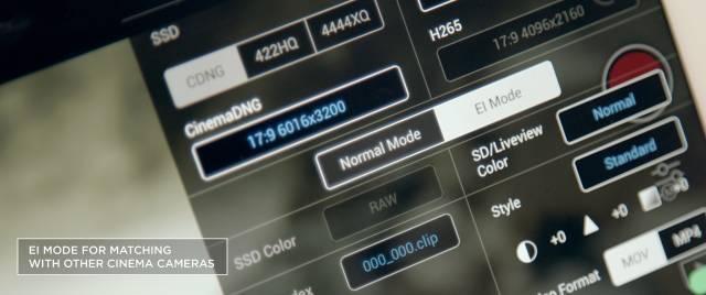 在性能提升的同时,禅思X7引入全新的EI模式(Exposure index曝光指数),能更好地在不同感光度下记录高质量素材底片,进一步减少失真、保留更多细节,使空中拍摄与地面拍摄无缝对接。在EI模式下,图传缓存画面和SD卡内录制均可直接套用D-log或Cine Rec.709,此时原ISO设置将变为EI值。录制Prores视频时,也可套用D-log进行拍摄记录。