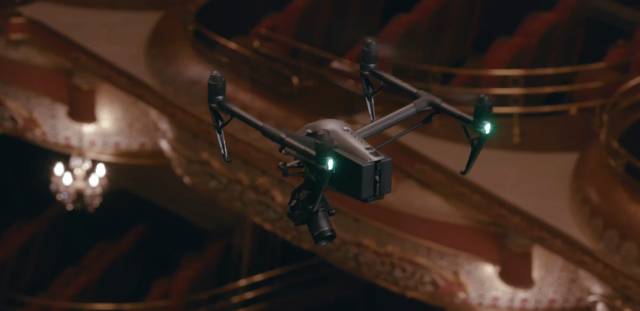 在歌剧院中如此复杂的光照场景下拍摄,要求相机配备高性能大尺寸的影像传感器。而禅思X7配备的S35影像传感器具备14档动态范围,为这种条件下的拍摄提供了稳定出色的画质保障。
