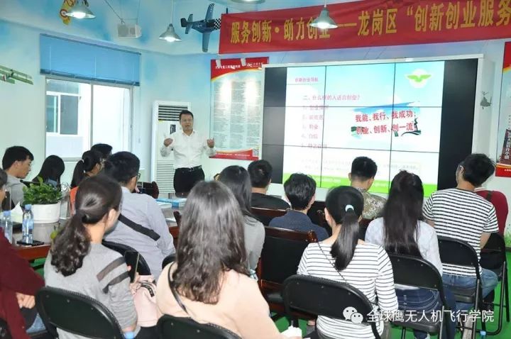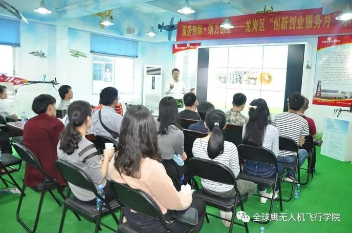 活动一开始,全球鹰市场部刘总监,为来访领导介绍今天活动内容以及活动流程,接着由第四届“双创”先锋人物代表全球鹰董事长余景兵给来访领导介绍该如何创新,该如何创业?余总在活动现场上一一为来访领导解疑答惑。并详细介绍了无人机领域的就业创业机会。