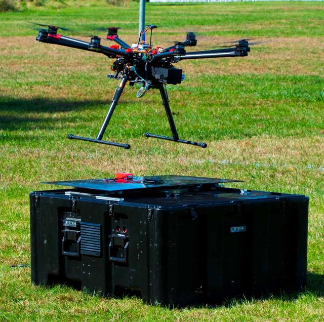 根据 Engadget 的报道,专注于无人机和机器人无线充电研究的美国公司 WiBotic 公司推出了一块超大型充电板 PowerPad。用户需要在无人机上安装上对应的无线充电模块,PowerPad 才能为无人机充电。