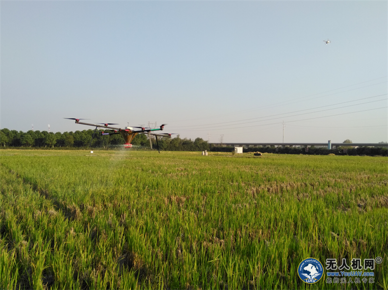 珠海羽人这次参展的谷上飞”3WDM8-20L大载荷多功能农用无人机在现场吸引众多目光,据了解该款无人机采用自主研发十字八旋翼动力布局,比中心对称式结构体积小,重量更轻、负载能力更强、抗风性能更好,工作时呈十字飞行,最大限度的拓宽了有效喷幅。作业喷杆与整体支撑结构融为一体,喷头置于旋翼的下方,工作中螺旋桨的下洗气流可以很好的增加喷施药剂的穿透性,同时促使农作物摆动,叶片的正反面均可着药,提高施药效果。