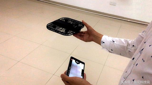 把快速使用手册浏览了一遍后,装上电池先在室内飞一飞。开机自检通过,指间放飞,这个功能不错!当飞机脱离手掌的那一刹那会有一种成功的喜悦感!纵观大大小小成百上千款无人机,包括玩具飞机,目前好像只有Hover有这个功能了,绝大部分都是要加油门推摇杆或者用APP的一键起飞功能来起飞。有了指间放飞功能,感觉档次一下不一样了,虽然是跟随者,还是给点掌声!
